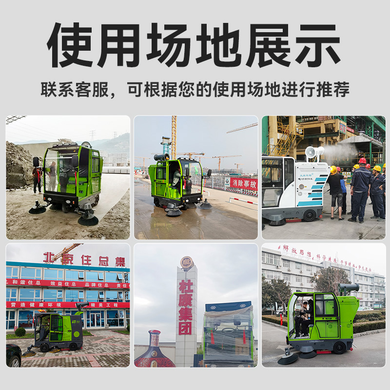 莱特LT-S26型全封闭驾驶式扫地车,清扫宽度2200mm,满电工作时间为4-6小时,工作效率:12000-16000㎡/h,采用的是大品牌铅酸免维护电池。应用场景为:厂区、车间、公园、街道、物业小区、地下车库、停车场、充电站、加油站、码头、学校、机场等区域。